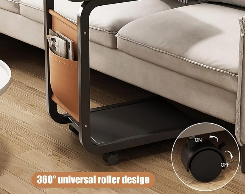 طاولة جانبية أنيقة ب عجلات مع مكابح لزيادة الثبات